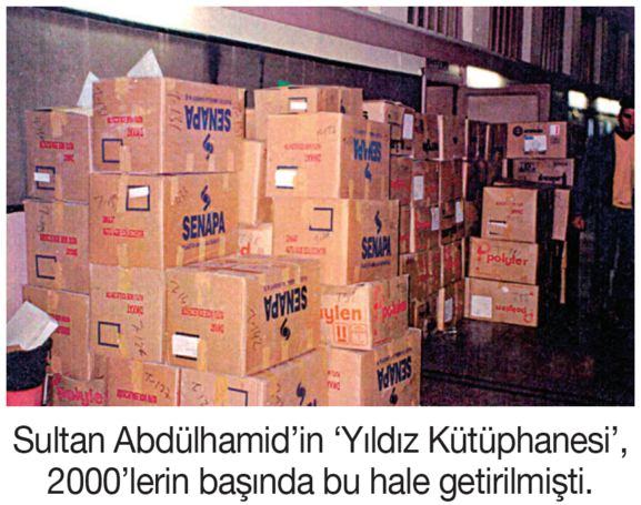 Bugün bu köşede Üniversite Kütüphanesi'nin gadre uğradığı ve paketlendiği günlerde, yani 2000'lerin başında çekilmiş bir fotoğrafını görüyorsunuz. Fotoğraftaki kolilerde bir eşi daha bulunamayacak olan kitaplar, yani Yıldız Sarayı'nın elyazmaları vardır ve Sultan Abdülhamid'in şimdi kör-topal ayakta tutulmaya çalışılan kütüphanesi, bir zamanlar işte böyle bodrumlara atılmıştır!