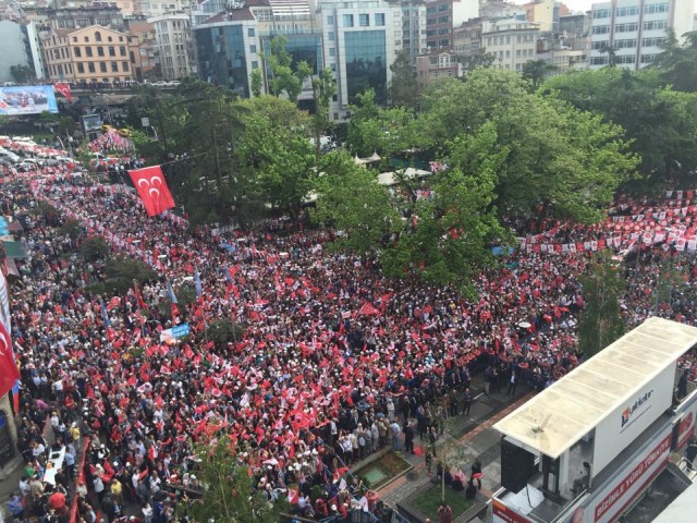 “Geçtiğimiz günlerde Trabzon’a gelmiş, yeni bir şey söylememiş, bilinenleri yalnızca tekrar etmiştir. Davutoğlu’nun vaat ettiği Trabzon Güney Çevre Yolu Projesi MHP’nin projesidir. MHP iktidarında proje ihalesi yapılmış ve bundan 13 yıl önce yapıma hazır hale getirilmiştir. Bu güzide proje AKP tarafından tam 13 yıldır tozlu raflarda bekletilmiştir. Davutoğlu’nun bu zamana kadar aklı neredeydi, nelerle uğraşıyordu? Güney Çevre Yolu’nu tamamlamak inşallah bize nasip olacaktır. Yıllar yılı ödenek sıkıntısı nedeniyle ağır aksak ilerleyen Karadeniz Sahil Yolu’nun önünü de MHP açmıştır…AKP iktidarının tam 3 seçimdir, Trabzon’u oyaladığı ve bir türlü bitirip hizmete açamadığı Akyazı Projesi Trabzon’a bir lütuf değildir. Trabzon’a ve Trabzonspor’a anasının ak sütü gibi helaldir. Çünkü Trabzon Akyazı’yı almak için büyük bedeller ödemiştir. Hüseyin Avni Aker Stadı, hemen yanıbaşındaki Yavuz Selim Stadı, 19 Mayıs Kapalı Spor Salonu, Orman Misafirhanesi, Trabzon Otobüs Terminali ve Akçaabat Fatih Stadı Trabzon’un elinden alınmıştır. Karşılığında da Akyazı Stadı’nın mülkiyeti Trabzonspor’a verilmemiş, sadece tahsis edilmiştir. İnşallah iktidarımızda, Akyazı Projesi için Trabzon’dan alınanlar Trabzon’a geri verilecektir. Ve Akyazı Projesi için dolgu yapılan alanın bütün geliri de Trabzonspor’a tahsis edilecektir. Trabzon ulaşımda sahip olduğu elverişli konumunu değerlendirmeli, demiryolu hatlarıyla da ulaşım sistemi güçlendirilmelidir. Bu bakımdan Yatırım Programı’nda yer alan Erzincan-Gümüşhane-Tirebolu-Trabzon Demiryolu Projesi’ni de önemsiyor ve elbette olumlu buluyoruz. Ancak, biz MHP olarak Trabzon’a, Karadeniz’e ve Türkiye’ye bir proje daha sunmak istiyoruz. Samsun-Trabzon-Hopa-Batum Demiryolu Projesi’ni Trabzon, Karadeniz ve Türkiye için çok daha verimli ve yararlı bir proje olarak değerlendiriyoruz. Bu projenin bir ucu Bakü’ye, bir ucu da Almatı’ya uzanacaktır. Bu proje bilim adamlarımızın, çeşitli sivil toplum kuruluşlarımızın da önerdikleri Demir İpekyolu Projesi’dir. Demir İpekyolu Projesi ile Türkiye, Trabzon üzerinden Avrasya ve Türk Dünyası ile barış ve işbirliği zemininde bütünleşecektir. Demir İpekyolu Projesi ile kıtalar, Trabzon ve Karadeniz üzerinden birleşecektir. Trabzon küllerinden yeniden doğacaktır. Trabzon Karadeniz’in iş ve aş üreten kutup yıldızı olacaktır.”