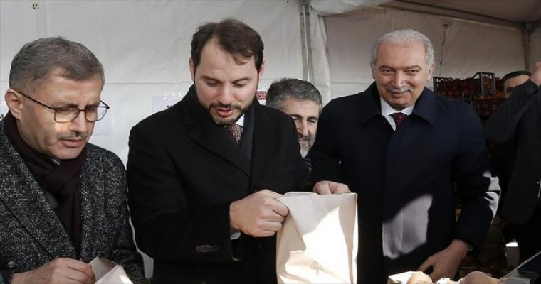 Ziyaretinde, satış stantlarının arkasına geçerek vatandaşlarla sohbet eden Albayrak, satılan ürünleri poşetlere koyarak vatandaşlara verdi.
