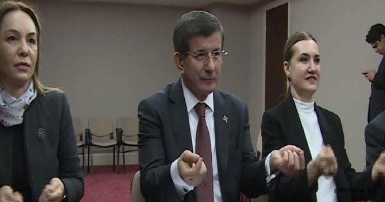 Eğitmenin öğrettiklerini işaret diliyle tekrarlayan Davutoğlu'na, Genel Başkan Yardımcıları Nükhet Hotar, Öznur Çalık ve Ekrem Erdem de eşlik etti.