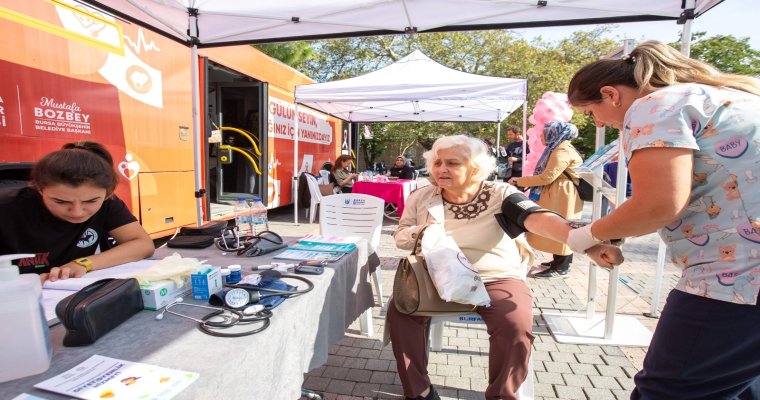 BURSA (İGFA) - Bursa Büyükşehir Belediyesi, 1-31 Ekim Meme Kanseri Farkındalık Ayı’nda çeşitli etkinliklerle halk sağlığına dikkat çekmeye devam ediyor. Sağlık İşleri Dairesi Başkanlığı Halk Sağlığı ve Sağlıklı Yaşam Şube Müdürlüğü tarafından Orhangazi Parkı’nda düzenlenen programda, İstanbul Tıp Fakültesi’nden Genel Cerrahi ve Meme Cerrahisi Uzmanı Doç. Dr. Selman Emiroğlu tarafından Sağlık Otobüsü içerisinde kadınlara ücretsiz muayene yapıldı. Alanda ücretsiz şeker ve tansiyon ölçümleri de yapan Büyükşehir Belediyesi hekimleri, vatandaşlara erken teşhis konusunda bilgilendirme broşürleri dağıttı.