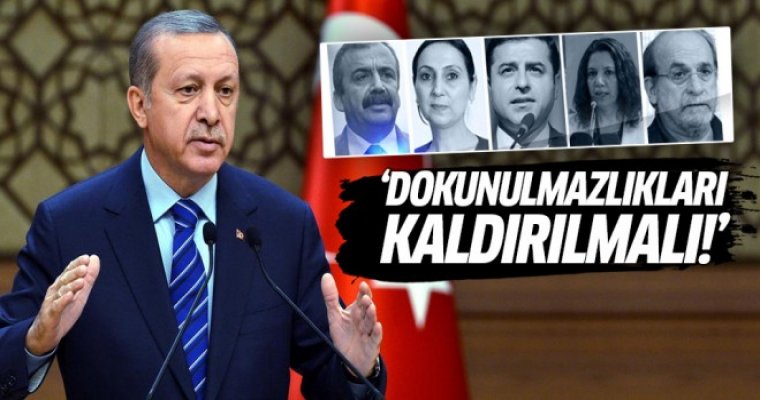 HDP'li vekillerin dokunulmazlıklarının kaldırılmasıyla ilgili Meclis'e seslenerek Bu meseleyi süratle neticelendirmeliyiz" diyen Cumhurbaşkanı Erdoğan, sözlerine şöyle devam etti: