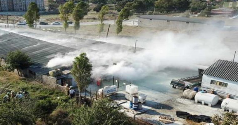 Hadımköy Deliklikaya Mahallesi'nde deterjan fabrikasında kullanılan asit kazanı patladı.