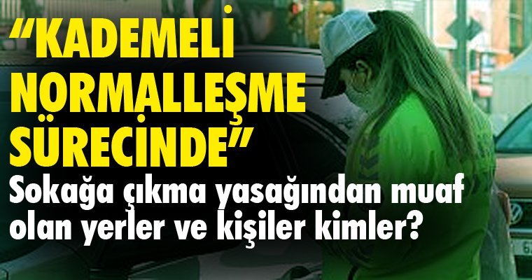 İçişleri Bakanlığı, koronavirus ile mücadele kapsamında "Tam Kapanma" sonrasında alınacak tedbirlerle ilgili, 81 İl Valiliğine "Kademeli Normalleşme Tedbirleri" konulu genelge gönderdi. Peki Kademeli normalleşme sürecinde sokağa çıkma yasağından muaf olan yerler ve kişiler kimler?
