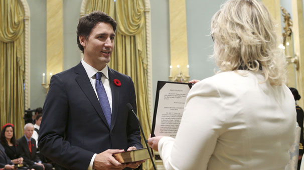 Ottawa'da Genel Vali David Johnston tarafından kabul edilen Liberal Parti lideri Justin Trudeau, Kanada'nın 23. Başbakanı olarak Rideau Hall'da kabinesiyle yemin etti ve görevine başladı. Yemin töreni nedeniyle Rideau Hall ilk kez halka açıldı. Böylece ilk kez bir hükümetin ant içme törenine Kanada halkı da katılmış oldu. Rideau Hall ve çevresini dolduran binlerce Kanadalı için, içerideki tören dev ekranlarla dışarıya da yansıtıldı. Başbakan Trudeau'nun yemin etmesinin ardından adeta sevince boğulan kalabalık, saatlerce sevgi gösterisi yaptı.
