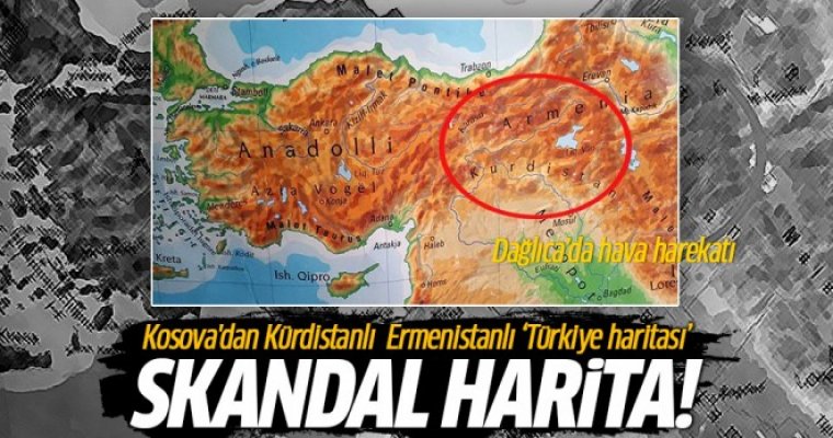 Kosova’nın Prizren şehrinde okullara dağıtılan coğrafi haritalarda Türkiye’nin Doğu Anadolu bölgesinin Ermenistan; Güney Doğu Anadolu bölgesinin ise Kürdistan olarak çizilmesi büyük tepki çekti.