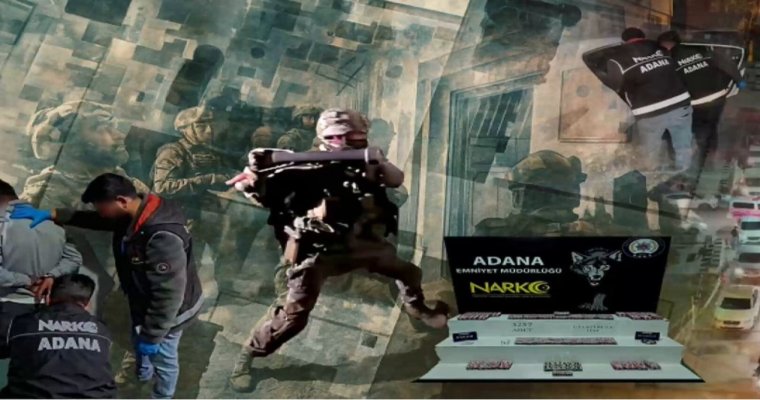 Adana Cumhuriyet Başsavcılığı ile Emniyet Genel Müdürlüğü Narkotik Suçlarla Mücadele Başkanlığı koordinesinde; Adana İl Emniyet Müdürlüğü Narkotik Suçlarla Mücadele Şube Müdürlüğünce yapılan çalışmalar kapsamında Adana, Hakkari, Hatay, İstanbul, Van, Diyarbakır ve Mersin illerinde toplam 38 adrese eş zamanlı baskın düzenlendi.